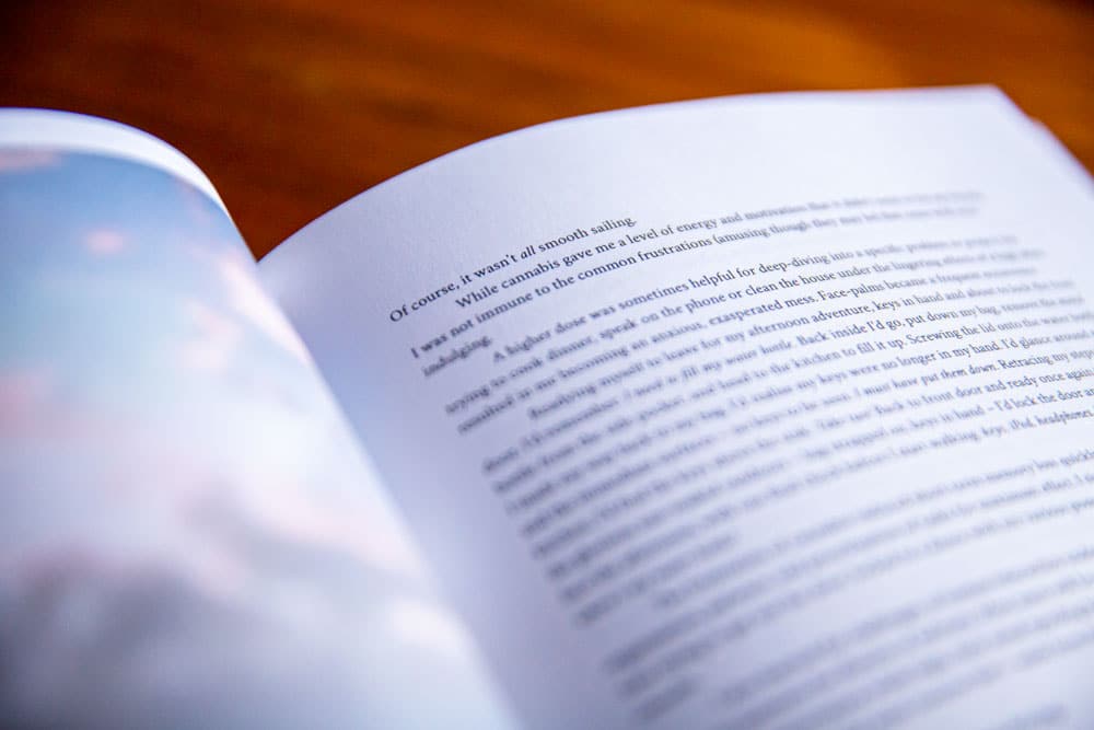 Drenched in Wonder is not a guide to cannabis use, nor is it my intention to glorify cannabis to the reader. Mine is only one story, and cannabis affects everyone differently. I don’t believe cannabis is ‘harmless’ — or rather, without potential to harm — and it is clear cannabis is not for everyone.